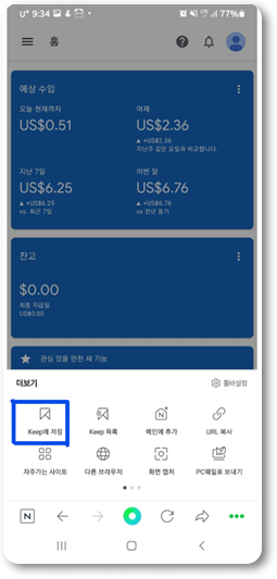 아래 더보기에 보시면 'keep에 저장'이란 아이콘 보이시죠? 아이콘을 살짝 누릅니다.