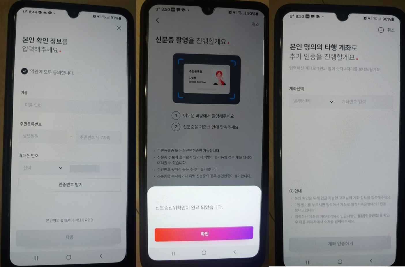 2. 본인 확인을 위해 서류 준비(주민등록증 또는 운전면허증, 본인 명의 타행 계좌)