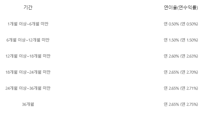 - 이자지급방법: 월 이자지급식, 만기지급식