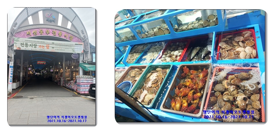 먼저 충남 태안 석갱이 오토캠핑장을 가기 전에 서산동부 전통시장에 들러 저녁에 먹을 조개를 샀다.