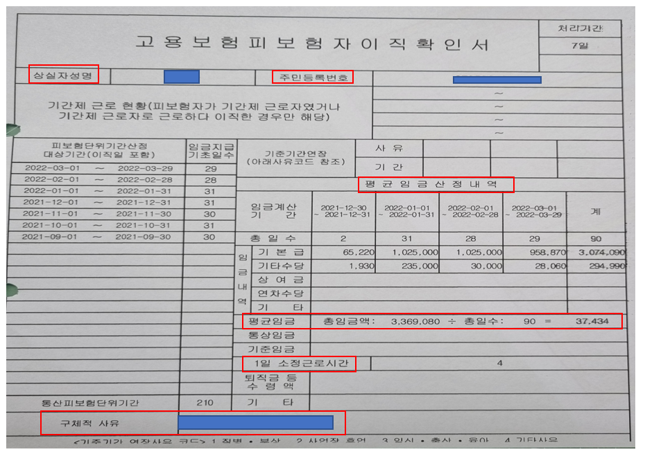 이직확인서에 작성되는 내용들