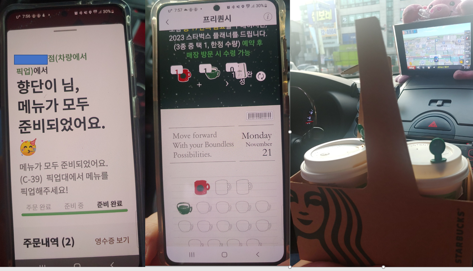 참!!! 스타벅스 기프티콘은 스타벅스 앱에서 미리 등록할 수 없으면 음료를 구입할 때마다 결제를 해야 하는 번거로움이 있지만 기프티콘 간편하게 사이렌 오더로 주문하고 차량에서 픽업하니 매장에 들어가지 않고 기다리는 시간을 줄이게 되어 너무 행복하다. 2023년 스타벅스 플래너를 받을 수 있는 프리퀀시도 이제 막 시작.. 그런데 언제 17잔을 다 먹지????